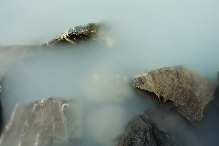 The water was a little rough; all the small air bubbles are from waves churning up the water.