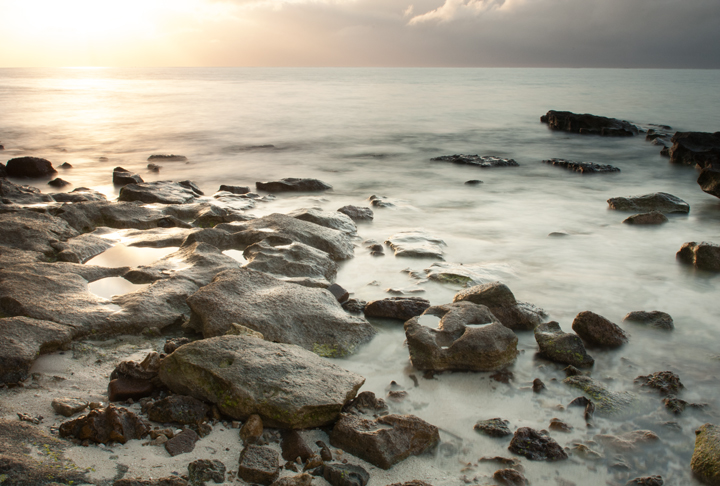 I took this image on the north-west side of Heron Island in the Great Barrier Reef, Australia. This was at a depth of only about 15 ft in very clear water. This is on the outer ocean side of a coral-cay (basically an atoll), so the seafloor drops off quickly to deep open ocean water on the left. On the right side of the image, the water progressively gets shallower up to the water surface at the edge of the cay. This shallow thriving ecosystem is a thin stripe around the periphery of the cay that is only about 100-200 feet wide. At times there was a light current as the ocean water is divided and flows around the outer edge of the cay. The water was a little cool at 68F.