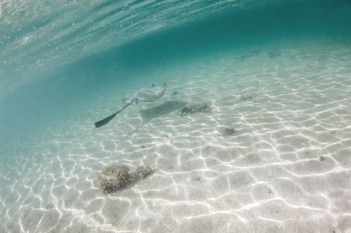 This is a small Scissortail Sergeant fish that I photographed in the Great Barrier Reef. I took this photograph in the calm water inside of a coral caye. The area was interesting because at low tide, I could wade out in waist deep water into the reef. There were sandy areas between the coral outcroppings, so it was possible to “walk” around the coral without damaging any of the reef. Because I was able to quietly sit still in one place, it was a great opportunity to see all the small reef animals in a relaxed state.