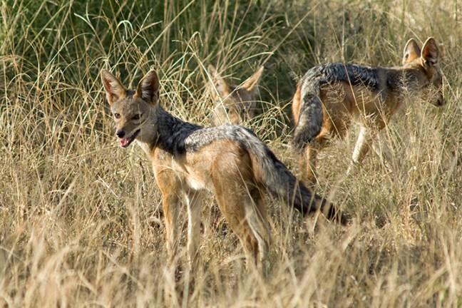 These are Black Backed Jackal that I photographed in the Serengeti of East Africa. I expected Jackals to be relatively large based on Egyptian depictions of them in art. The first time I saw one of these little guys in the wild I was surprised by how small it was. These particular Black Backed Jackals are a little smaller than a North American coyote. They have an interesting personality, though. Unlike a coyote, they are more confident and actively prowl during the day.