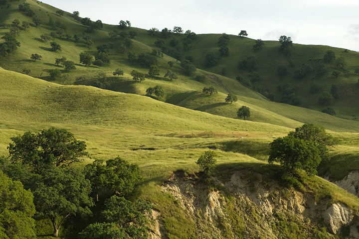 I took this photograph near Caliente, California. I have always liked the area for landscape and small wildlife photography. This is open ranch land. Most of the year, the hills are the classic California tawny color, but sometimes in the spring, if the rain has been good, the hills turn a beautiful green. On this particular day, the weather was not cooperating and the light was grey and flat, but for just a minute, a gap in the clouds opened up and let some beautiful evening light shine across the hills. I like the way the light makes the hills look like something out of an illustrated storybook.