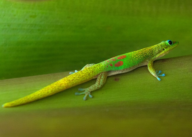 Sunday Nature Stills – 07/21/2019 Posted on July 21, 2019January 14, 2019 by Michael Fuchs Photography This is a Gold Dust Day Gecko that I photographed in Kauai, Hawaii. They have the most fantastic colors. They are fairly territorial, so they are quite entertaining to watch interacting with each other.