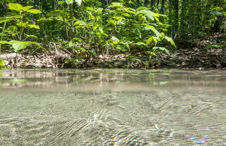 I took this photograph in a small, clear stream that was running through a green forest along the King River in Alaska.