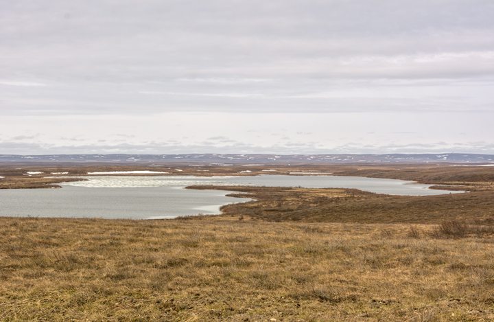 Arctic tundra is a bit different than I originally expected. From a distance it looks like rolling hills of short brown or green grass. A bit closer up, you notice that it often has small flowers, Arctic Cottongrass, and clumps of different plants. Looking even closer, it is neat to observe that it is a very dense ecosystem of many small plants mixed together. It is often quite soft when not frozen. Walking on it is difficult as you sink down into the soft mossy surface and into the mud that separates the tundra from the underlying permafrost.