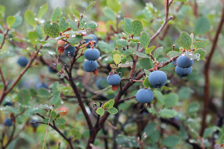 I photographed these wild blueberries along a remote stretch of the Denali Highway. Despite the name, the Denali Highway is a 130 mile long muddy dirt road that runs east to west across central Alaska. It winds between lakes and cuts through some beautiful landscape. In late summer, the open expanses of glacier formed rolling hills are covered in tasty ripe blueberries. It’s a pretty place.