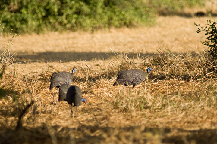 I know a lot of animals have very specific patterning to blend in, but I’m still a bit puzzled (although delighted) by the guinea fowl’s bright blue heads!
